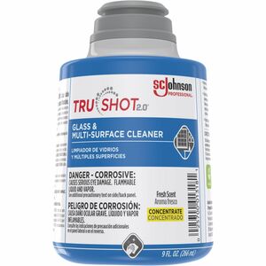 Part of the TruShot 2.0 Mobile Dispensing System, TruShot 2.0 Glass and Multi-Surface Cleaner delivers exceptional cleaning. It removes dirt, grease, oils, dust, grime and other soils on washable surfaces: glass, windows, mirrors, aluminum, walls, sinks, countertops, cabinets and other exterior surfaces. Cleaner leaves a streak-free shine and a fresh, clean scent. Spray and wipe dry with a reusable cloth or rubber squeegee. Portable, no-spill cartridge features an integrated metering system that provides worry-free dilution delivery. Only use this concentrated cleaner with the TruShot 2.0 trigger dispenser. Snap cartridge directly into the trigger dispenser. Easy-to-use system requires no mixing, measuring or stopping, and its fully intuitive design will have cleaning crews using it in minutes. Dispenser's onboard water reservoir easily fills at any water source, reducing re-supply trips.